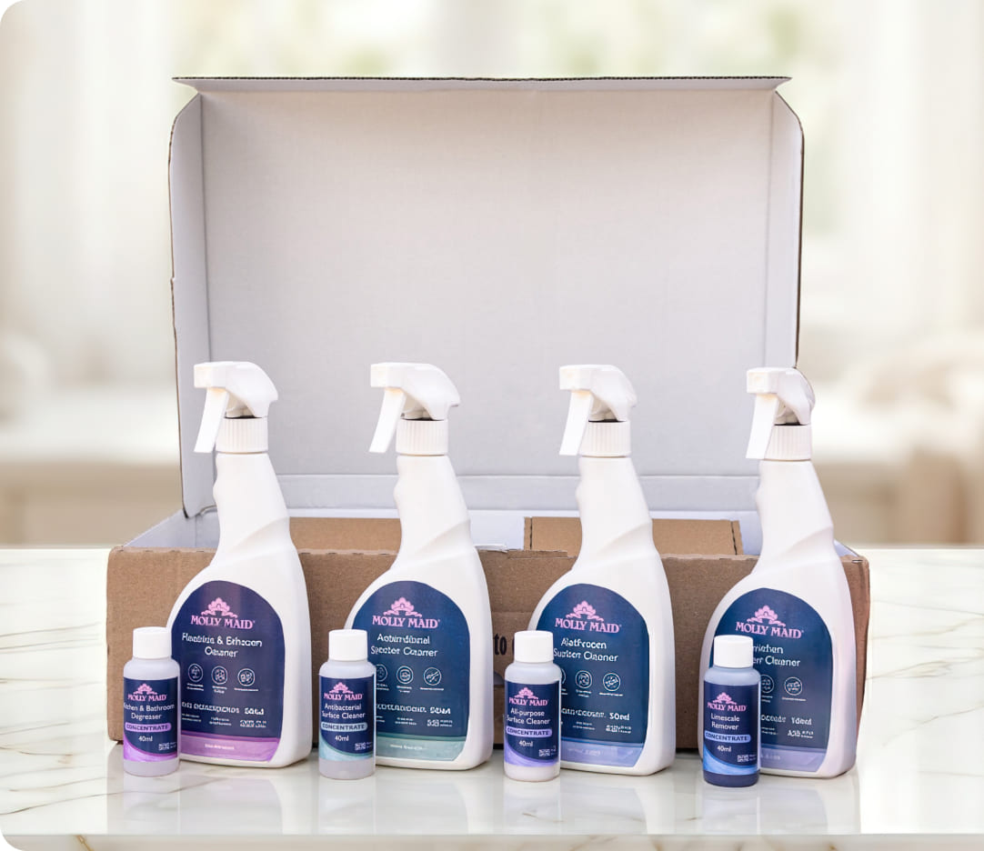 The products are professional-grade and used by Molly Maid cleaners in millions of homes.