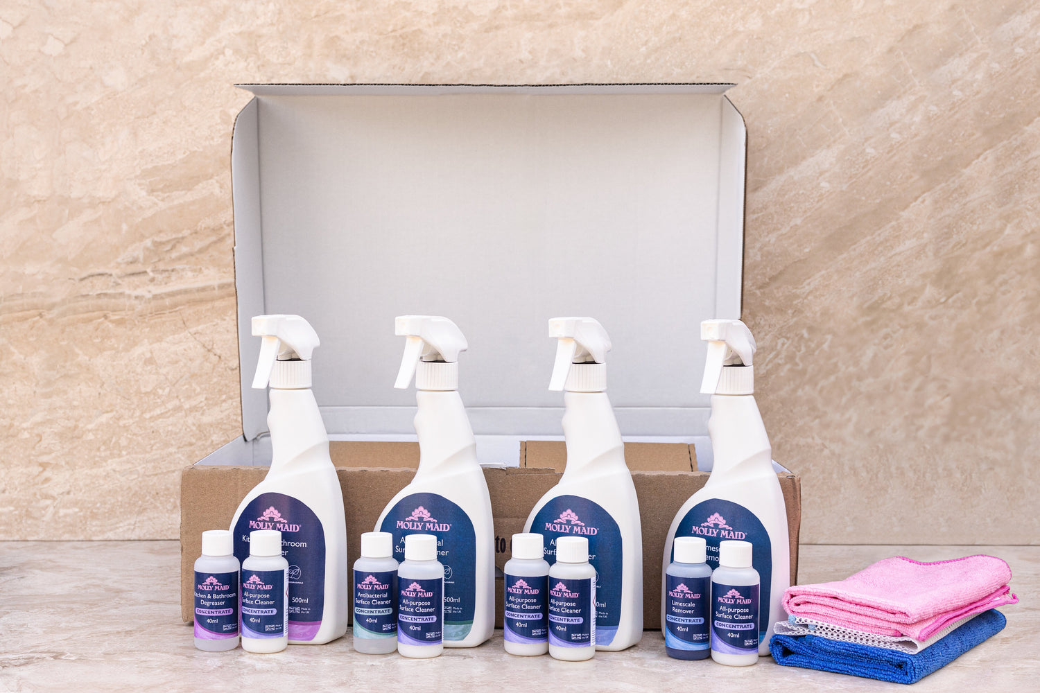 These cleaning products are manufactured for Molly Maid by a UK company at the forefront of cleaning in a more environmentally friendly and sustainable way. They meet our exacting requirements for the safety of our thousands of cleaners and as a result they are also better for the environment.